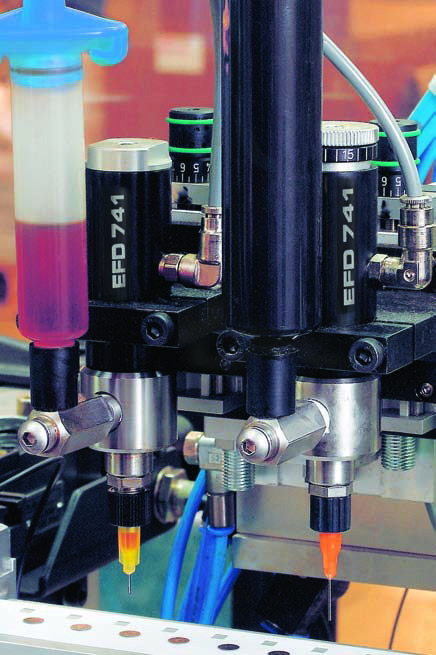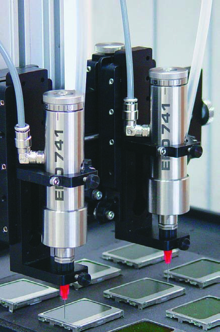 The 741V Series Needle Valve applies low-viscosity fluids like silicone oils, solvents, and UV-Cure adhesives in accurate, repeatable amounts. Because the stainless-steel needle seats in the tip adapter, there is virtually no dead fluid volume between shots.