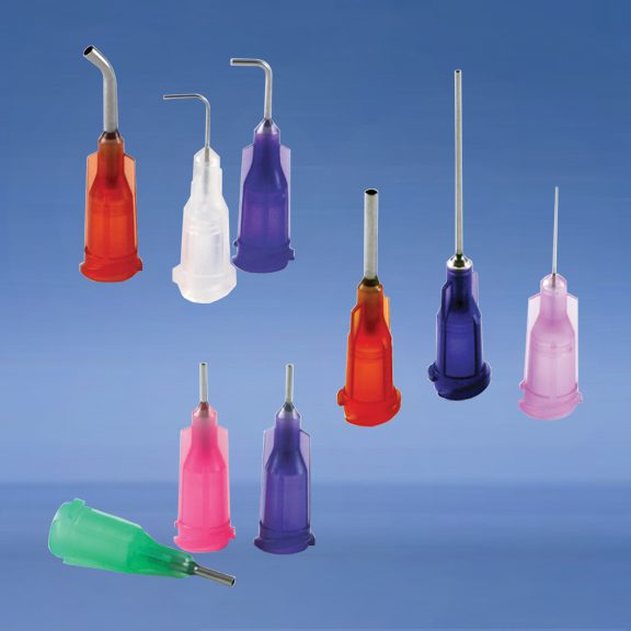 Each hub is designed with flush mating of the hub to the cutoff for smooth fluid flow and to prevent trapped air, which causes dripping and drooling. Burr-free passivated stainless-steel tubing ensures consistent fluid deposits. Each hub is also manufactured and quality-tested to be free of molding flash – bits of plastic that can block fluid flow and cause inconsistent deposits.