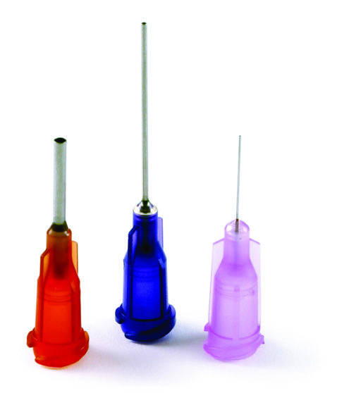 Tip hubs are color coded by size to help identify the gauge or internal diameter. Tips are also packaged in clear boxes for easy inventory control – with lot numbers, part numbers, and other information clearly labeled for greater process control and traceability.