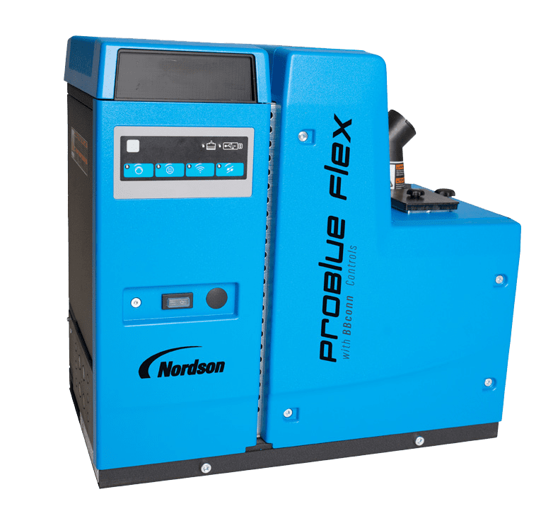 The ProBlue Flex incorporates intelligent technology that enables ultra-precise dispensing accuracy. It is complemented by Nordson’s new BBconn Controls, which allows for remote operation, more visibility, real-time oversight, and the data and analytics needed for continuous improvement.